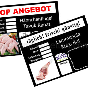 Metzger Komplettset „TOP ANGEBOT“ + „täglich,frisch,günstig“ zum Hängen